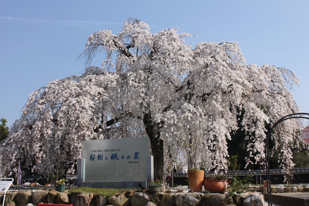 洞泉寺山門横にの名木の「しだれざくら」がございます。樹齢は100~200年位と思われますが、毎年3月のお彼岸頃に満開を迎え、ご参詣の皆様、また地域の皆様に癒しを与えてくれています。